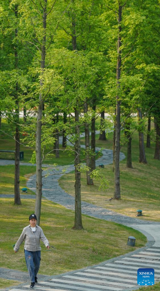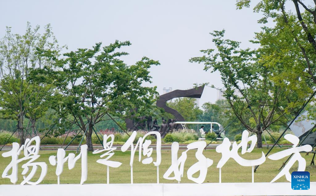 A women walks at Sanwan eco-cultural park in Yangzhou, east China's Jiangsu Province, May 25, 2022. Located in Sanwan section of the canal in Yangzhou, the scenic area has become a new tourist attraction since its opening to public in 2017. (Xinhua/Li Bo)