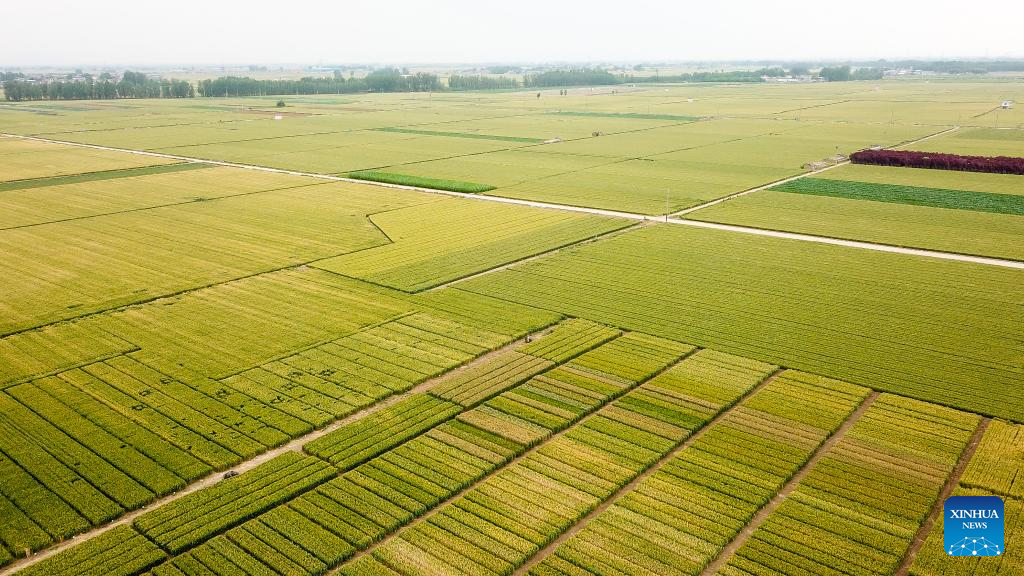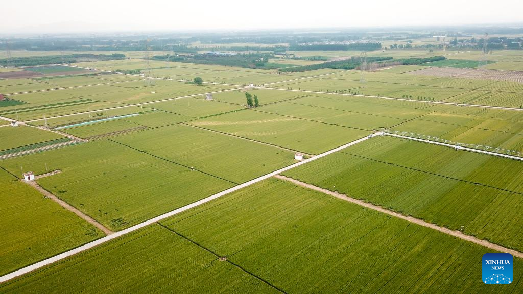 Aerial photo taken on May 26, 2022 shows wheat fields in Mazhuang Township of Tai'an City, east China's Shandong Province. (Xinhua/Guo Xulei)