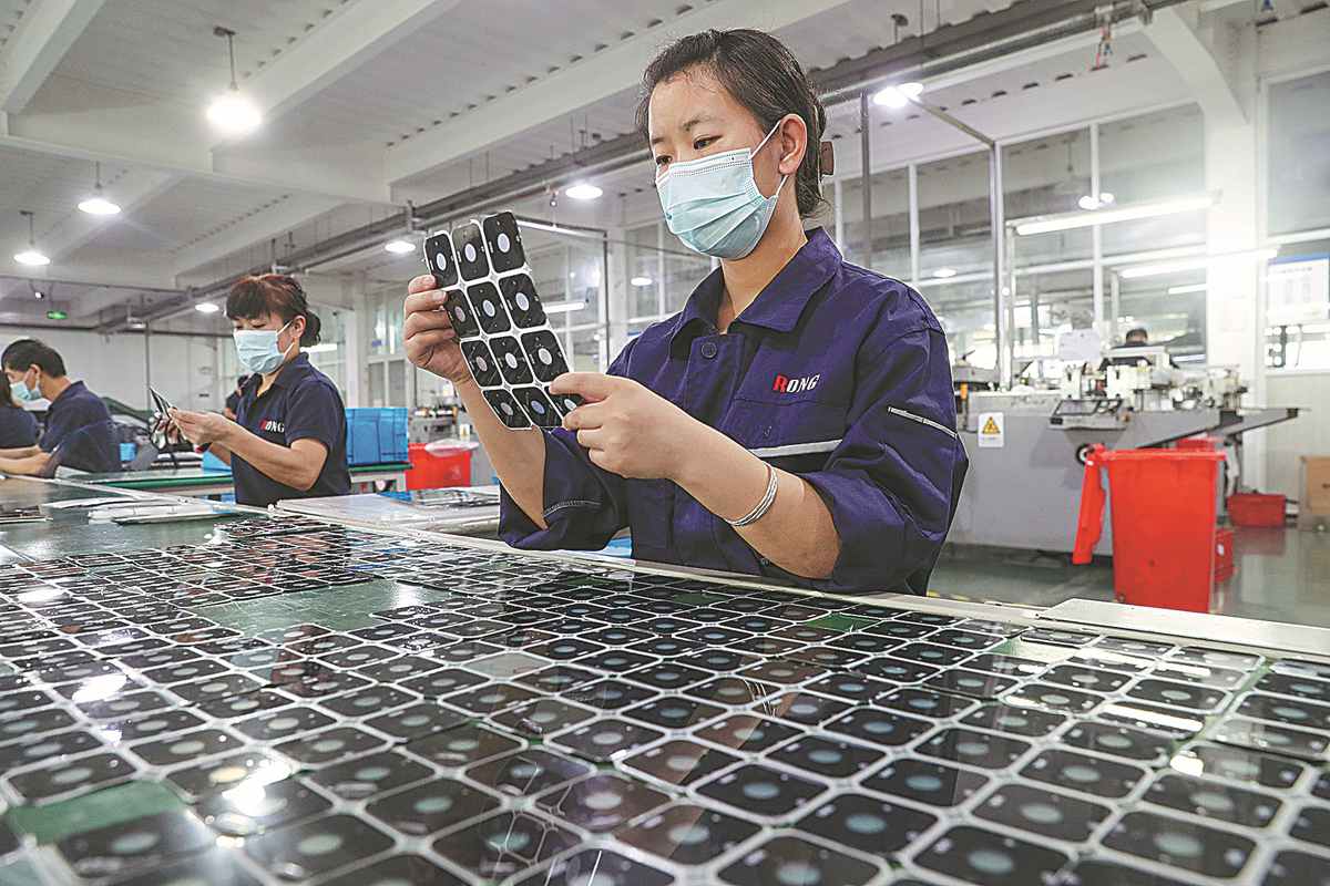 Employees work on the production line of an electronics company in Huzhou, Zhejiang province. [Photo by Wang Shucheng/For China Daily]