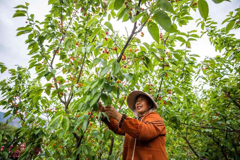 Since cherry orchards are mostly located on hillsides, watering the fruit trees used to be a tough task for local farmers. Thanks to the improvement in local irrigation conditions, Yang’s cherry trees have been well watered and produced a good harvest, bringing him an income of more than 100,000 yuan (about $14,863) this year.