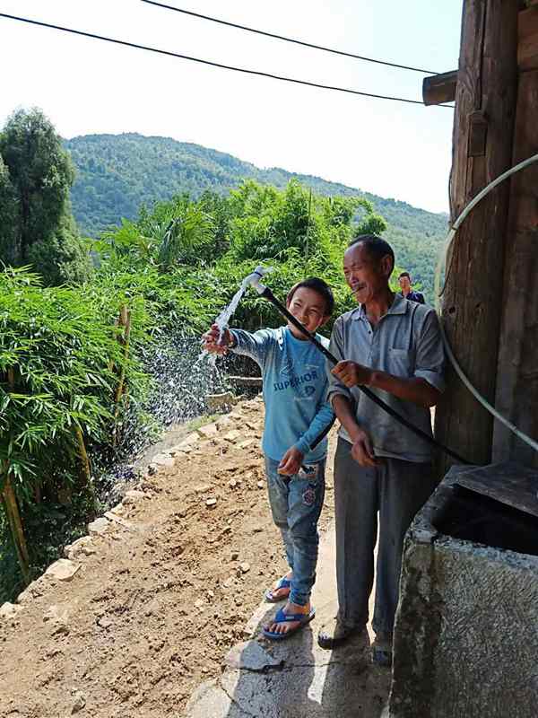 “We used to drink mountain spring water and rainwater running off the roof. On rainy days, the water would become so muddy that we had to keep it in a cistern for a couple of days to let the impurities subside before we can drink it. The tap water we drink now has a sweet taste. Even the rice cooked with the water tastes better than before,” said villager Yang Shengjiang.