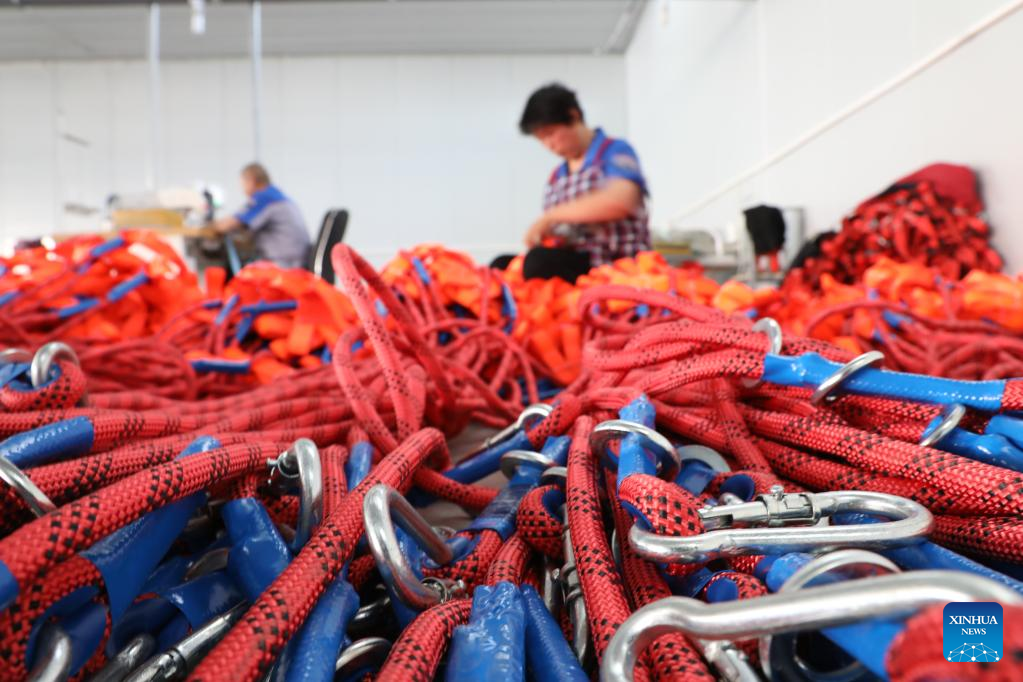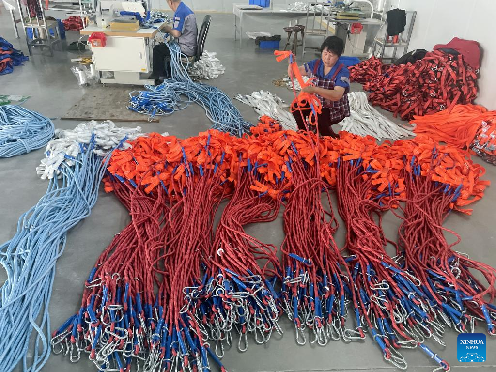 Workers produce safety ropes at a workshop of an enterprise in Lizhuang Township of Huimin County, east China's Shandong Province, May 21, 2022.