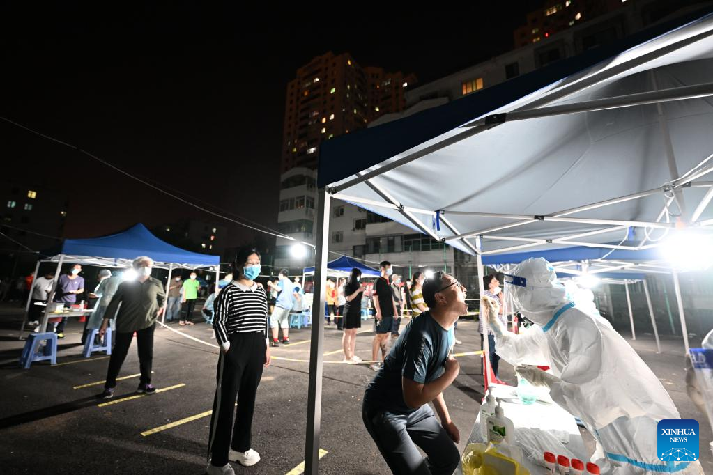 Residents take nucleic acid tests at a residential area in Nankai District, north China's Tianjin, May 20, 2022.(Xinhua/Zhao Zishuo)