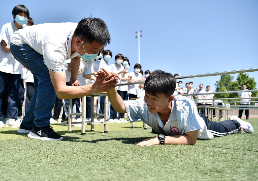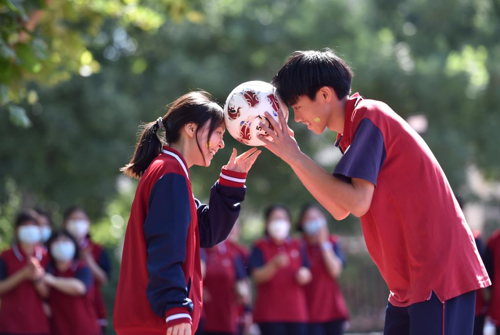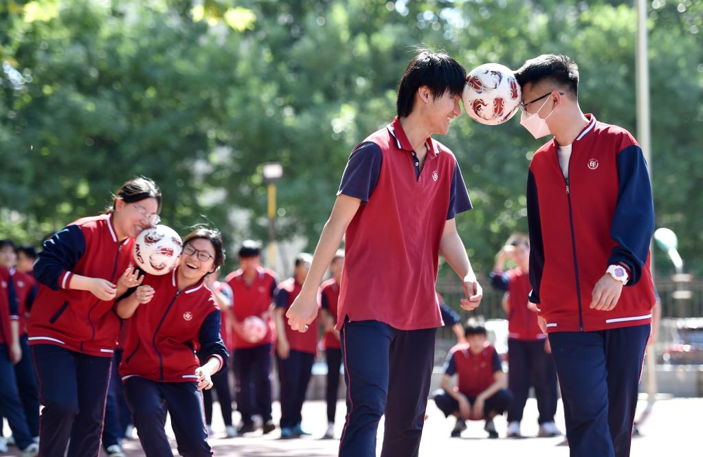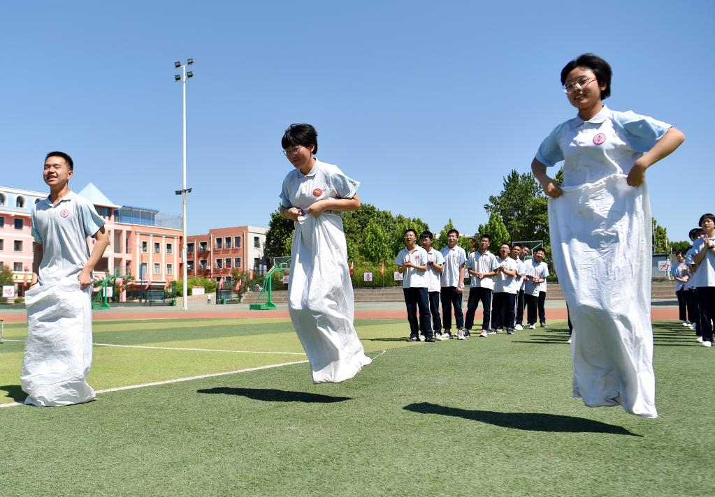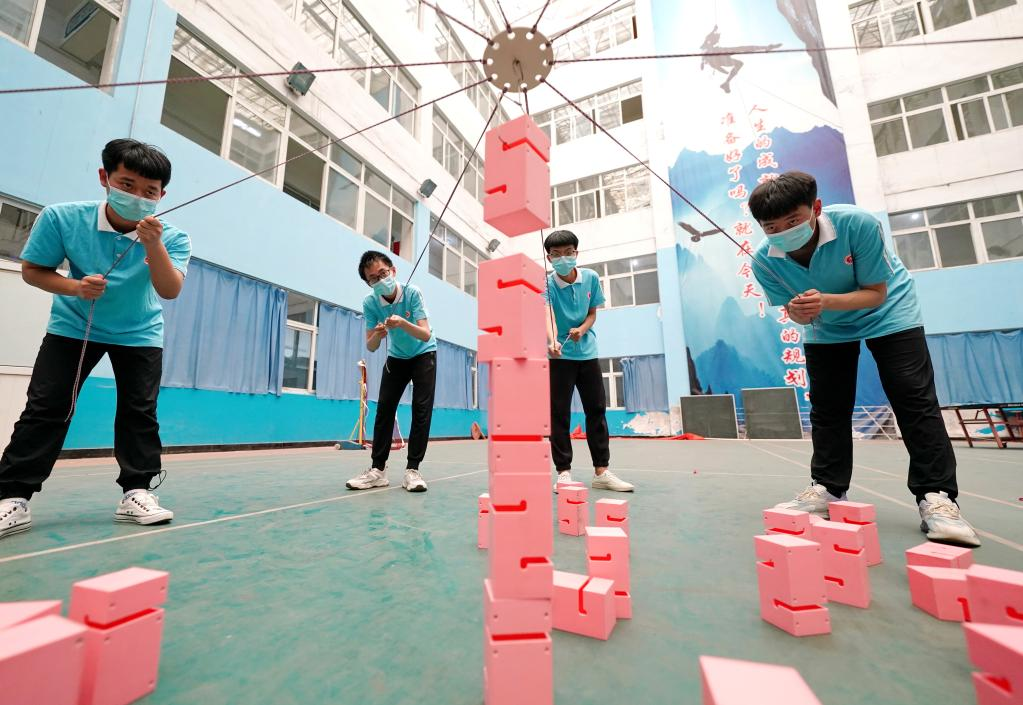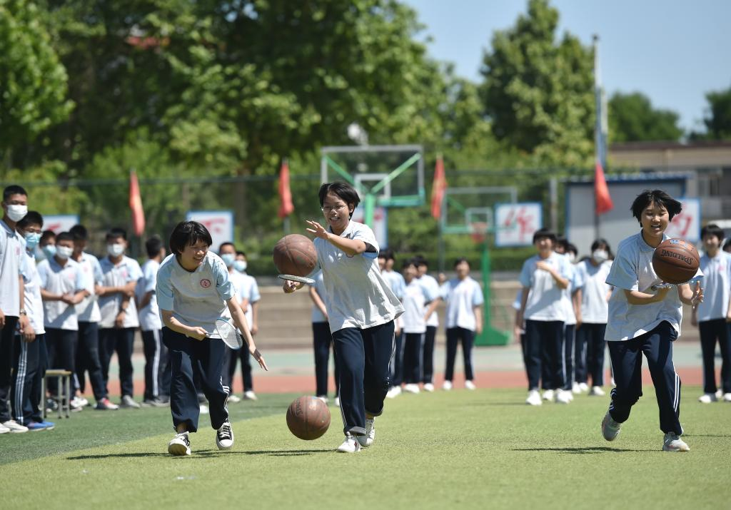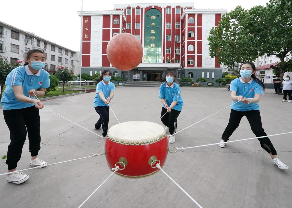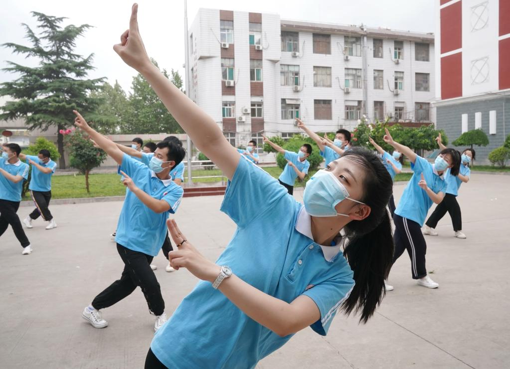 China's national college entrance exam for 2022, also known as Gaokao, will be held on June 7 and 8. With COVID-19 control measures put in place, schools in Hebei Province have organized various activities to help students relax and stay in their best shape for the approaching examination. (Photo by Liang Zidong/Xinhua)