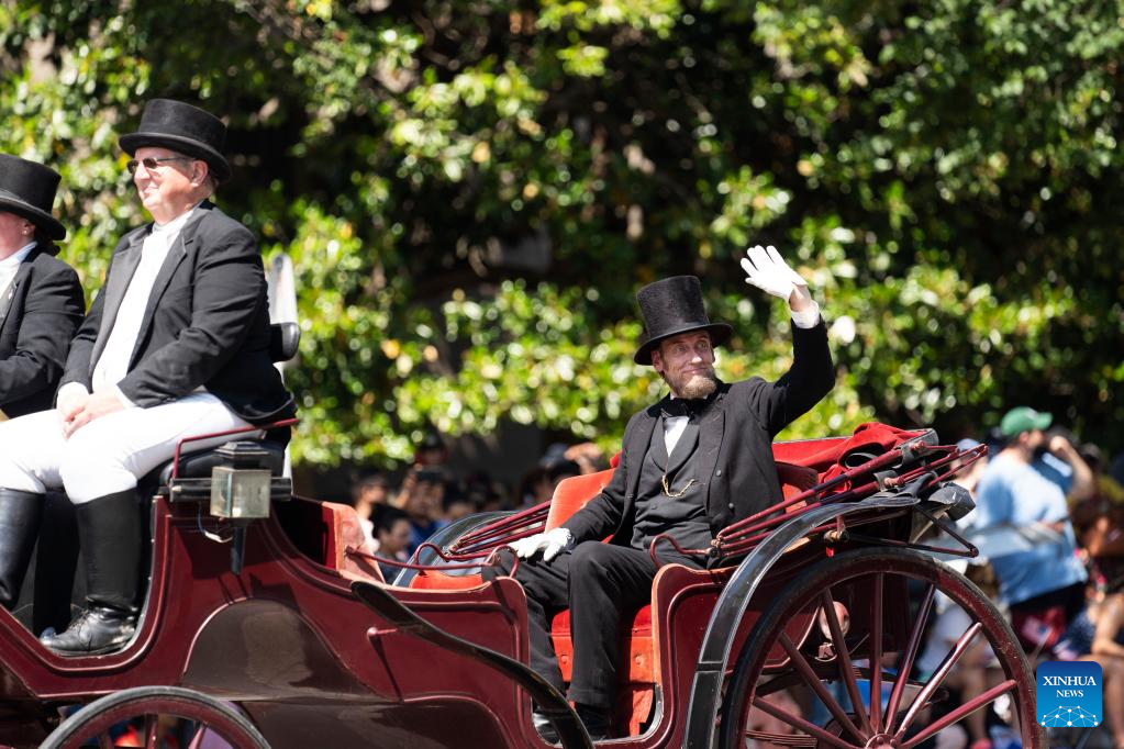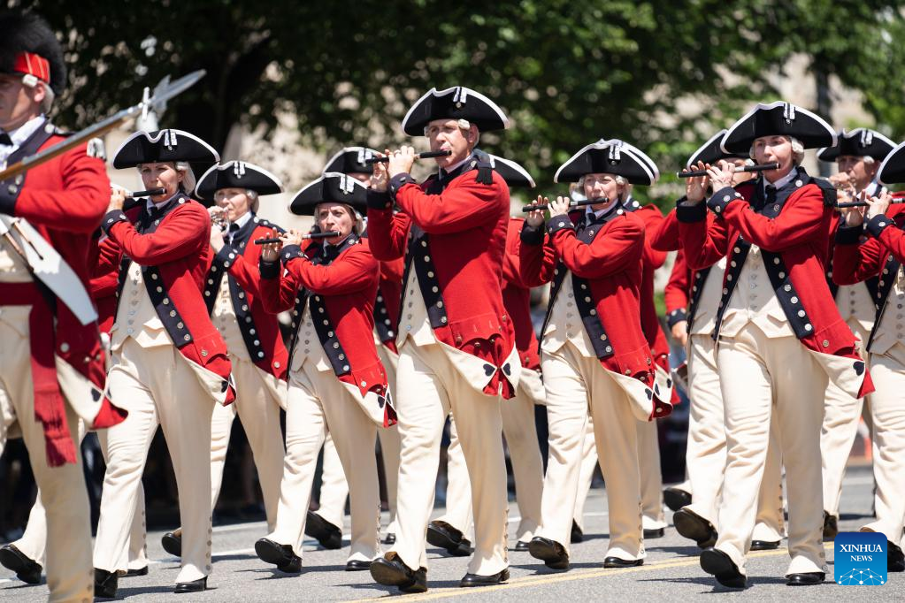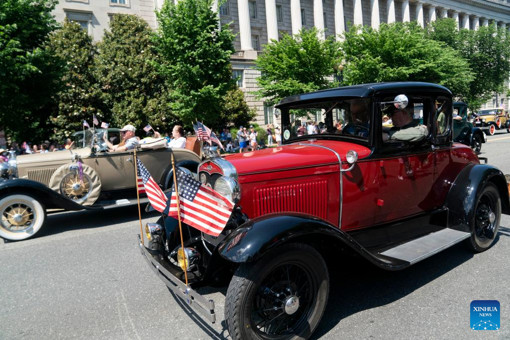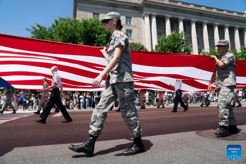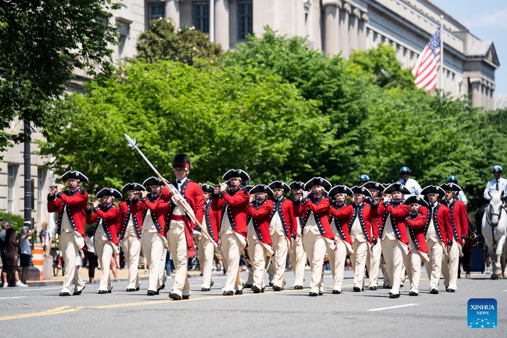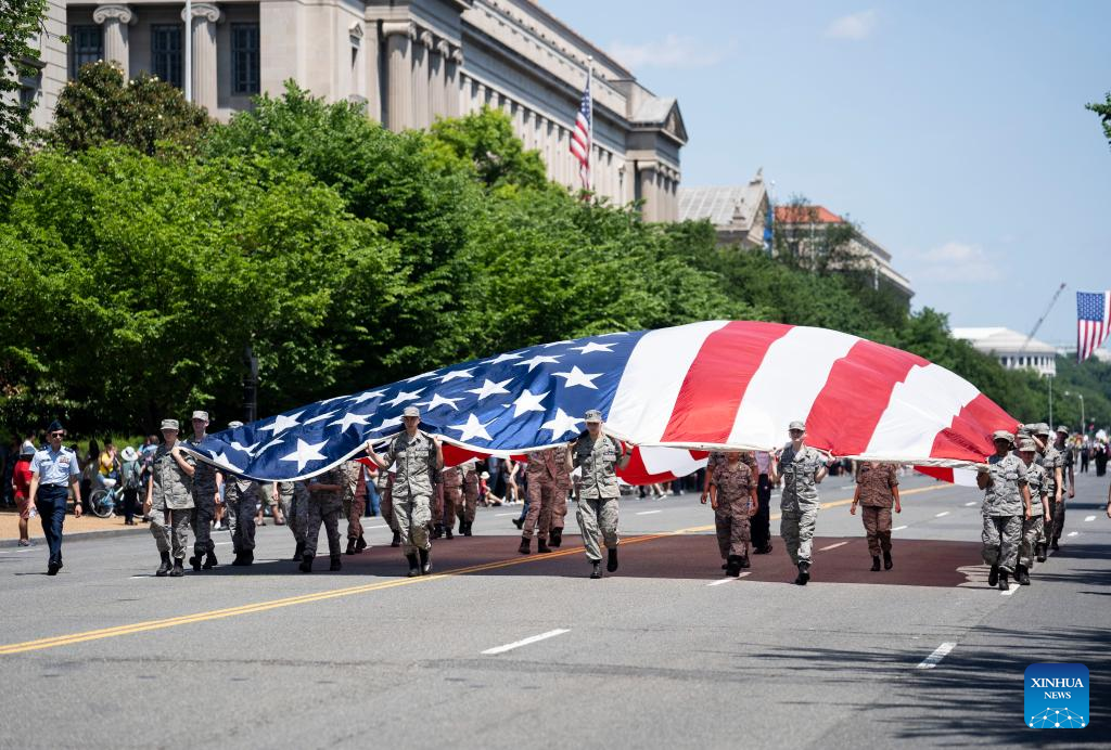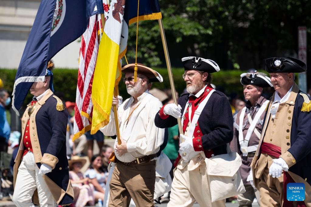 People take part in the Memorial Day Parade in Washington, D.C., the United States, on May 30, 2022. Memorial Day is a U.S. federal holiday observed on the last Monday of May. (Xinhua/Liu Jie)