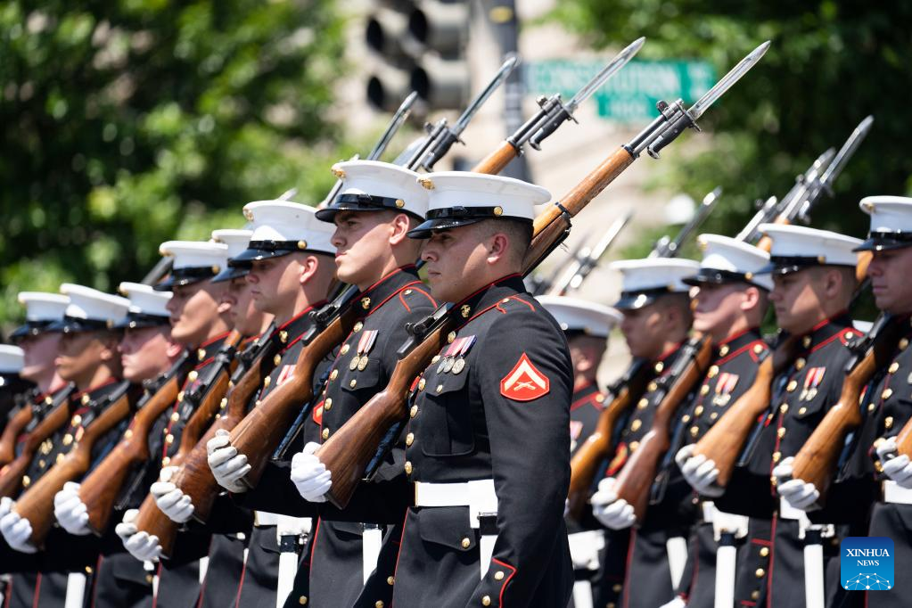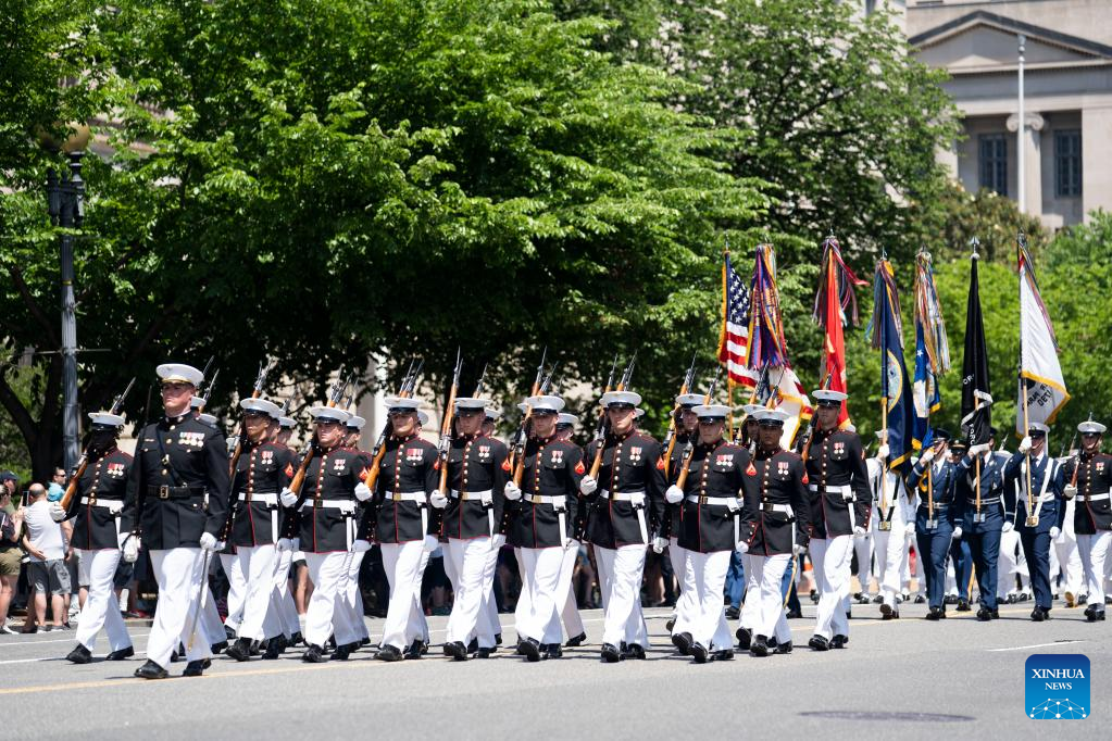 Service members take part in the Memorial Day Parade in Washington, D.C., the United States, on May 30, 2022. Memorial Day is a U.S. federal holiday observed on the last Monday of May. (Xinhua/Liu Jie)