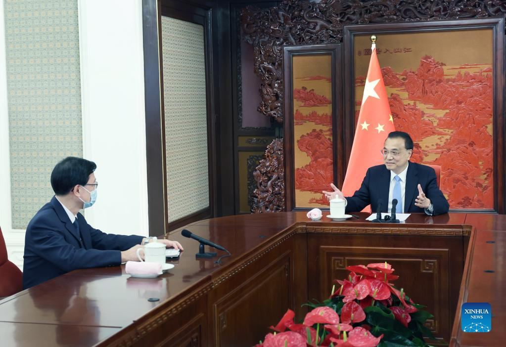 Premier Li Keqiang meets with John Lee in Beijing, capital of China, May 30, 2022. Li granted the official certificate of appointment to Lee as the sixth-term chief executive of Hong Kong Special Administrative Region (HKSAR) on Monday. (Xinhua/Yao Dawei)