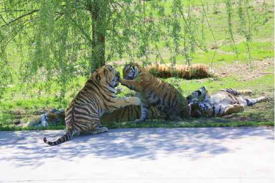 Photo taken on May 16, 2021 shows Siberian tigers playing with each other in the Siberian Tiger Park in Songbei district, Harbin city, northeast China’s Heilongjiang province. (People’s Daily Online/Wang Bo)