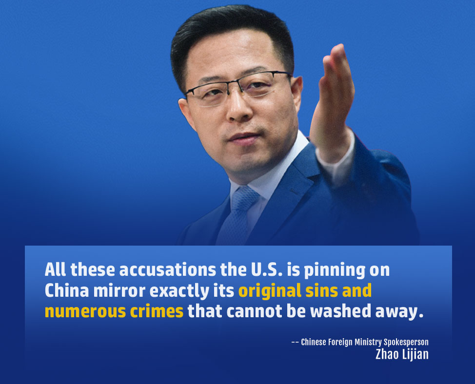 He said there is much more about the egregious crimes of the United States. To be specific, the resigned COVID-19 policy of the U.S. government has cost more than one million lives, a price for its irresponsibility and inability. The continuous shootings in the United States, which claim more than 110 lives a day on average, have broken not only the so-called American dream, but also the hearts of millions of Americans.