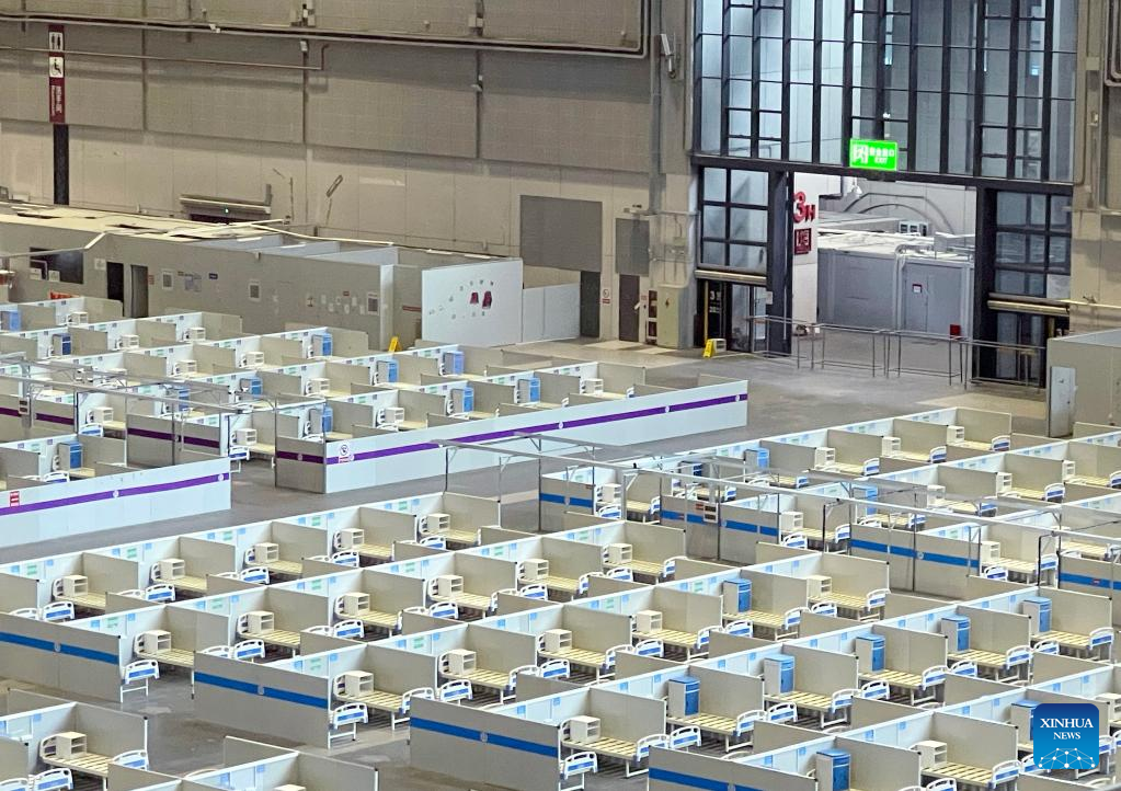 Photo taken on May 31, 2022 shows a view of the makeshift hospital at the National Exhibition and Convention Center (NECC) in east China's Shanghai. The convention center-turned makeshift hospital, Shanghai's largest makeshift hospital for COVID-19 patients during the latest resurgence of infections, closed down on Tuesday. (Xinhua/Ding Ting)