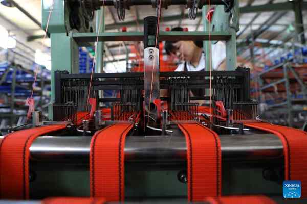A worker produces safety belts at a workshop of an enterprise in Lizhuang Township of Huimin County, east China's Shandong Province, May 21, 2022. (Photo/Xinhua)