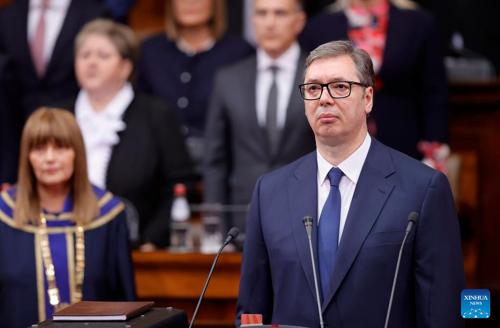 Aleksandar Vucic is sworn in at the National Assembly for his second term as president of Serbia, in Belgrade, Serbia, on May 31, 2022. (Photo by Predrag Milosavljevic/Xinhua)