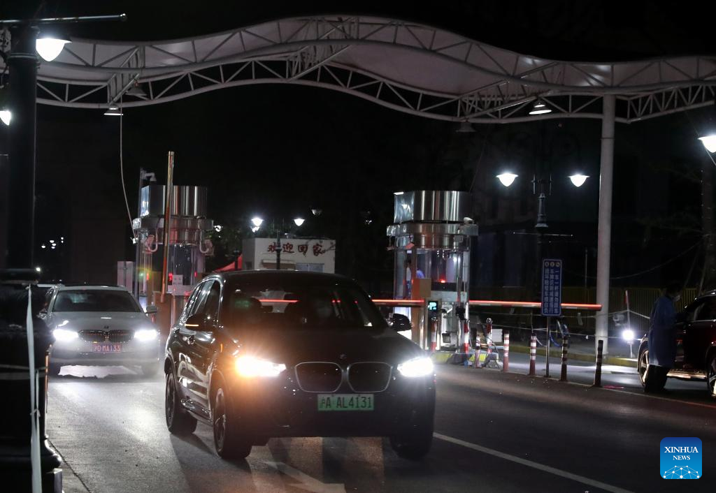 Vehicles drive out of a community in Minhang District, east China's Shanghai, June 1, 2022. (Xinhua/Liu Ying)