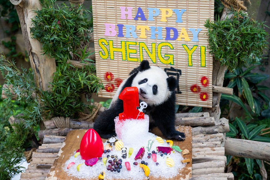 Giant panda cub Sheng Yi celebrates its first birthday at the Giant Panda Conservation Center of Zoo Negara near Kuala Lumpur, Malaysia, May 31, 2022. (Xinhua/Zhu Wei)
