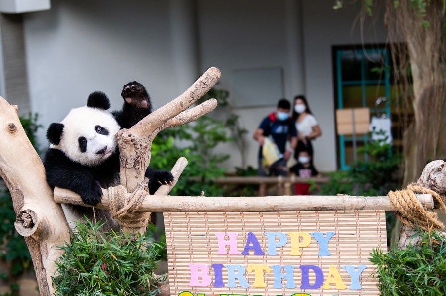 Giant panda cub Sheng Yi celebrates its first birthday at the Giant Panda Conservation Center of Zoo Negara near Kuala Lumpur, Malaysia, May 31, 2022. (Xinhua/Zhu Wei)