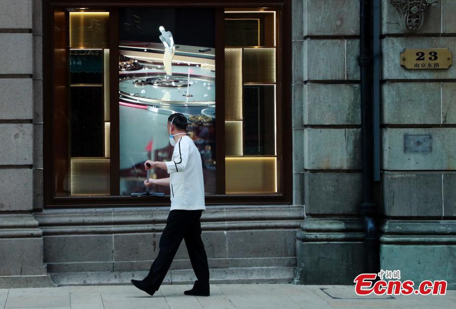 A staff member cleans a store window before it reopens in Shanghai, Jun. 1, 2022. (Photo: China News Service/Tang Yanjun)