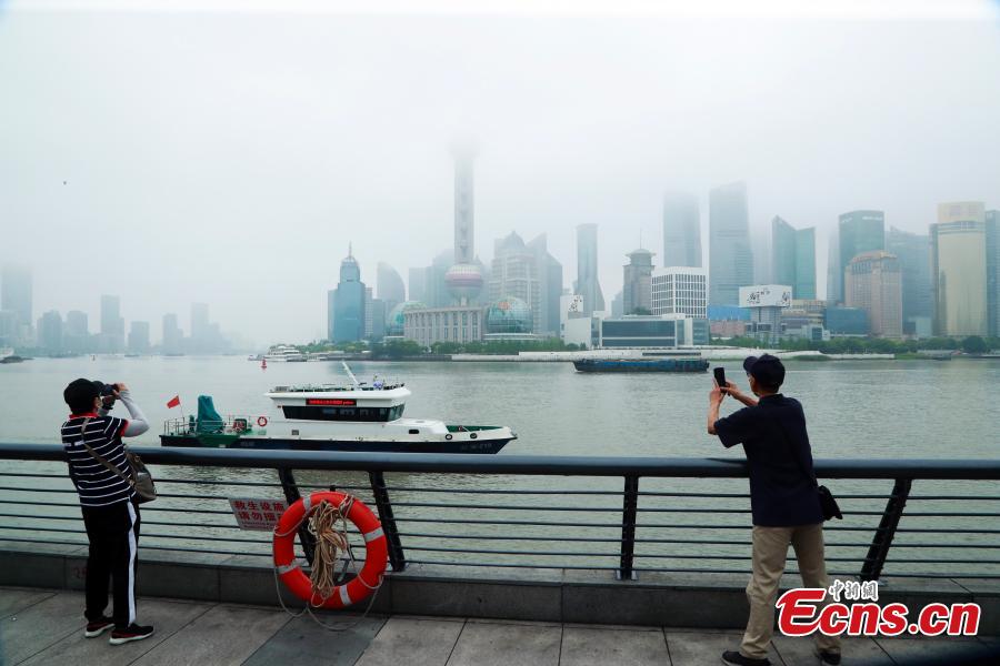 Residents take photos at the Bund in Shanghai, Jun. 1, 2022. (Photo: China News Service/Tang Yanjun)