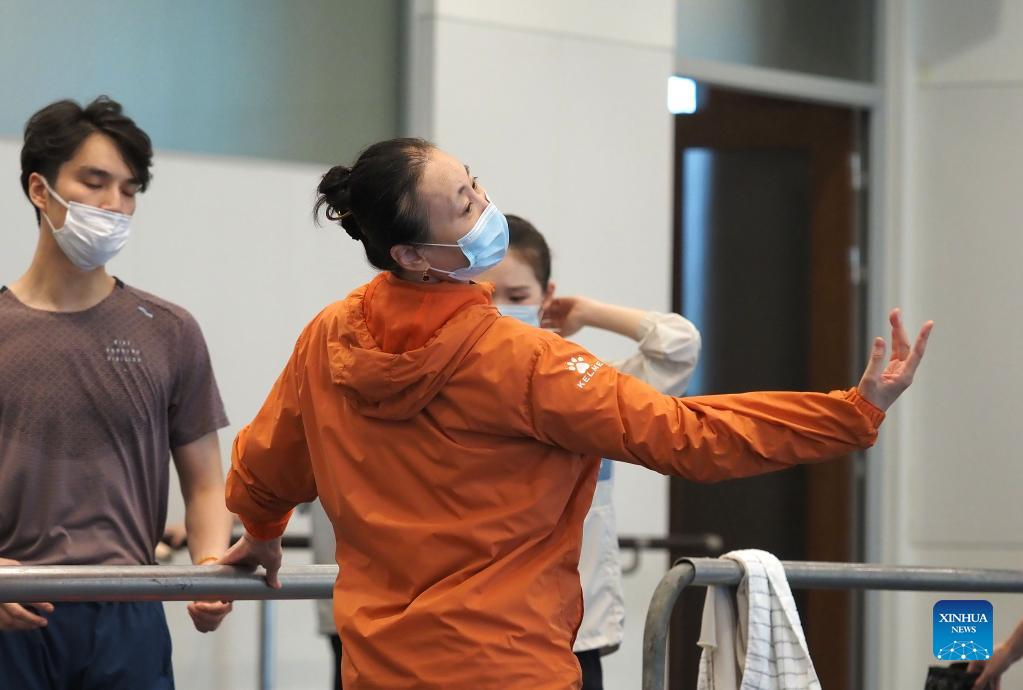 Xin Lili, the executive director of Shanghai Ballet, demonstrates movements during a training course in east China's Shanghai, June 1, 2022. (Xinhua/Ren Long)