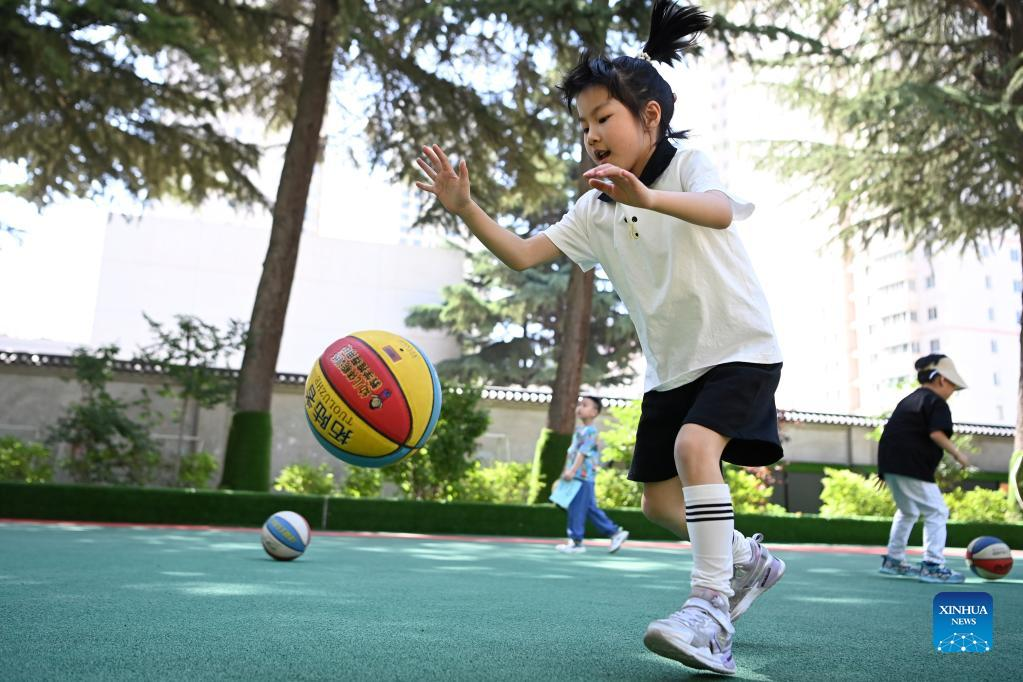 Children take part in an outdoor game to celebrate the International Children's Day at a kindergarten in Xigu District of Lanzhou, northwest China's Gansu Province, June 1, 2022. (Xinhua/Chen Bin)