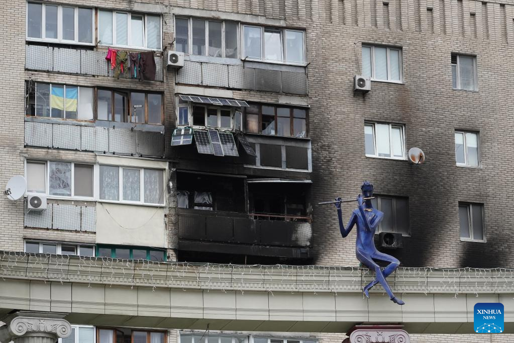 Photo taken on May 31, 2022 shows a burned residential building in Irpin, Ukraine. (Photo by Roman Petushkov/Xinhua)