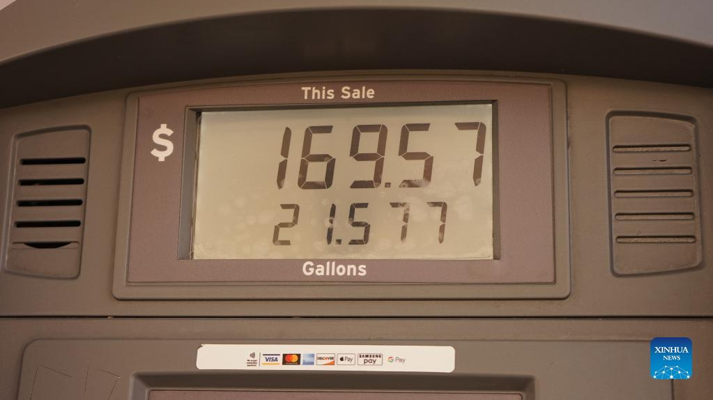 Gas price is displayed at a gas station in Los Angeles, California, the United States, June 1, 2022. The national average price of regular unleaded gas in the United States soared to a record high of 4.67 U.S. dollars per gallon Wednesday and a further rise is widely expected over the coming months. (Photo by Zeng Hui/Xinhua)