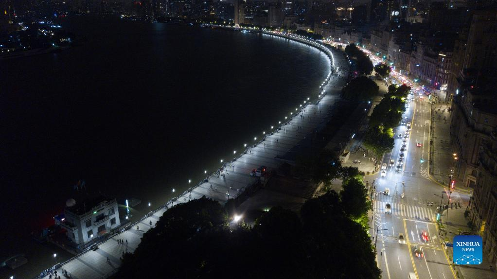 Aerial photo taken in the wee hours of June 1, 2022 shows the night view at the Bund in east China's Shanghai. (Xinhua/Jin Liwang)