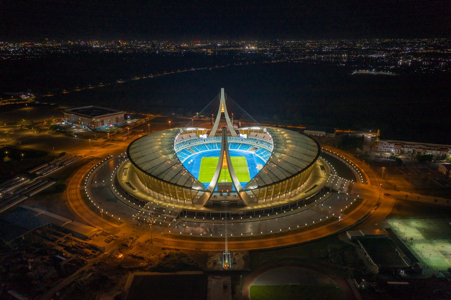 In the shape of a sailing ship, the 39.9-meter-tall stadium opened last year. Cambodian Tourism Minister Thong Khon, who is also president of the National Olympic Committee of Cambodia, said the stadium is a great achievement in Cambodia's sports sector and a new symbol of the unbreakable iron-clad friendship between Cambodia and China.