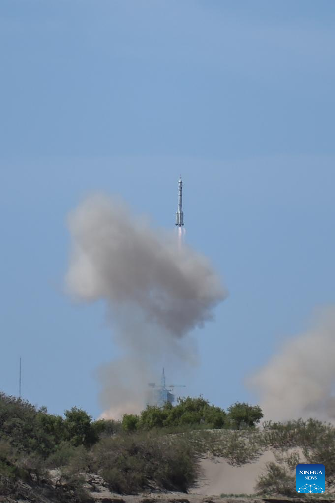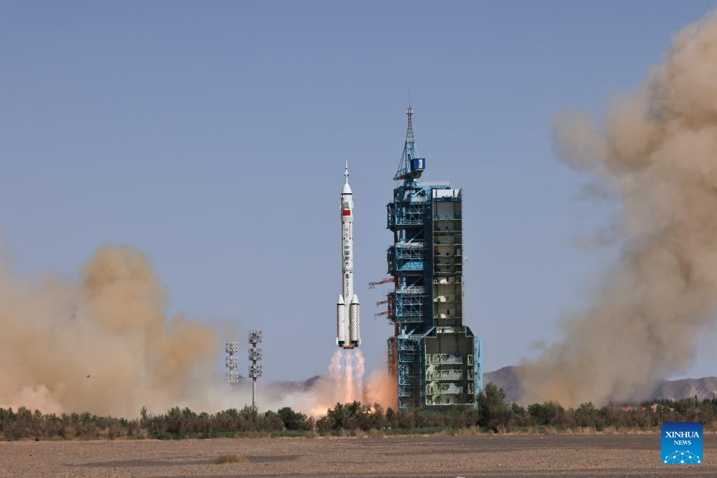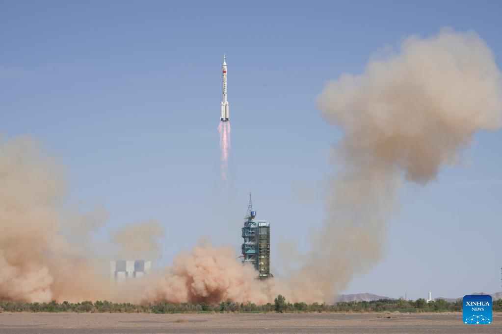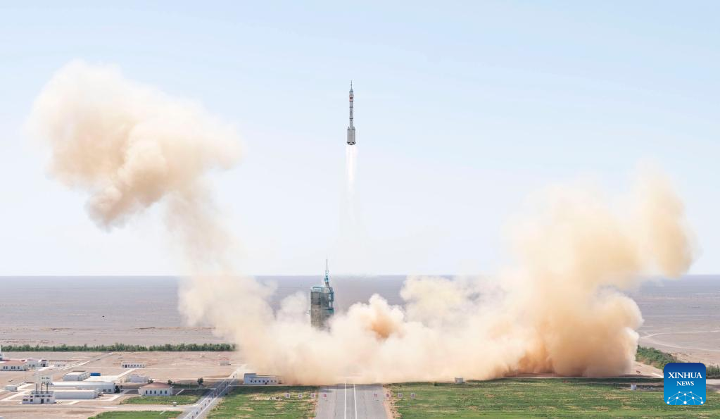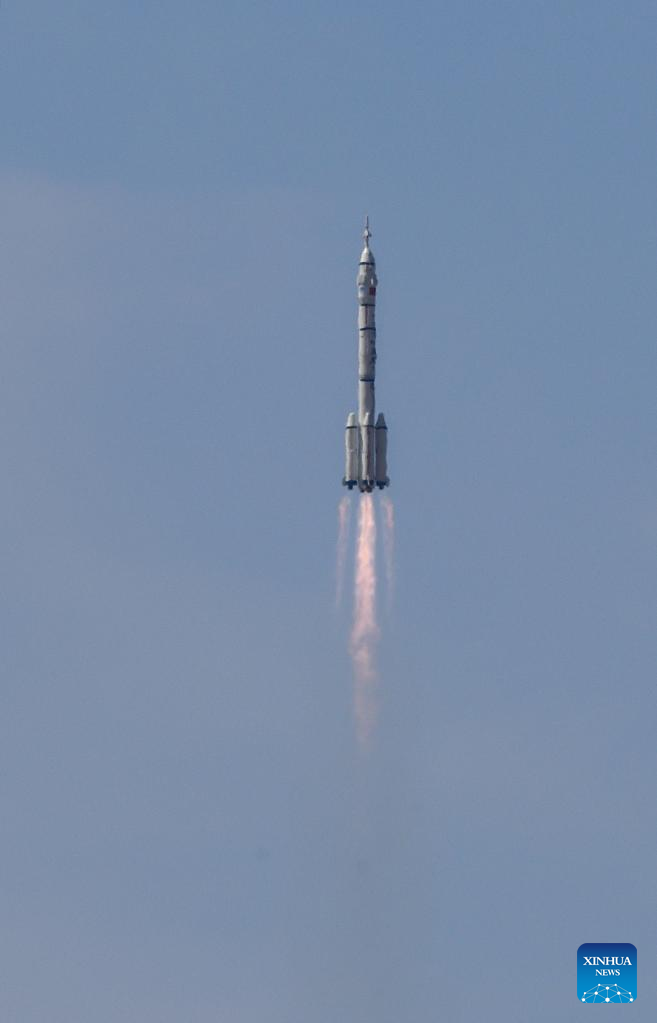 JIUQUAN, June 5 (Xinhua) -- China on Sunday launched the crewed spaceship Shenzhou-14, sending three astronauts to its space station combination for a six-month mission.