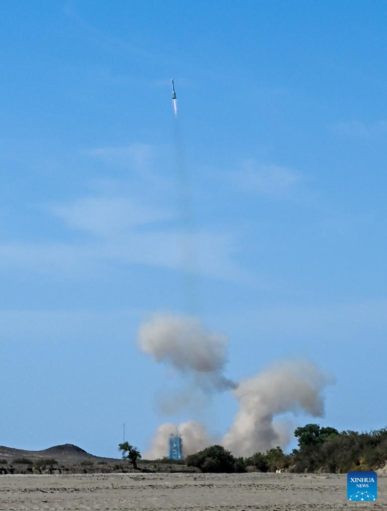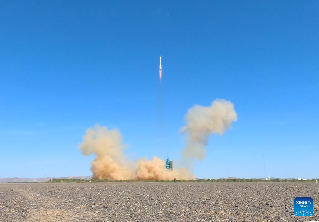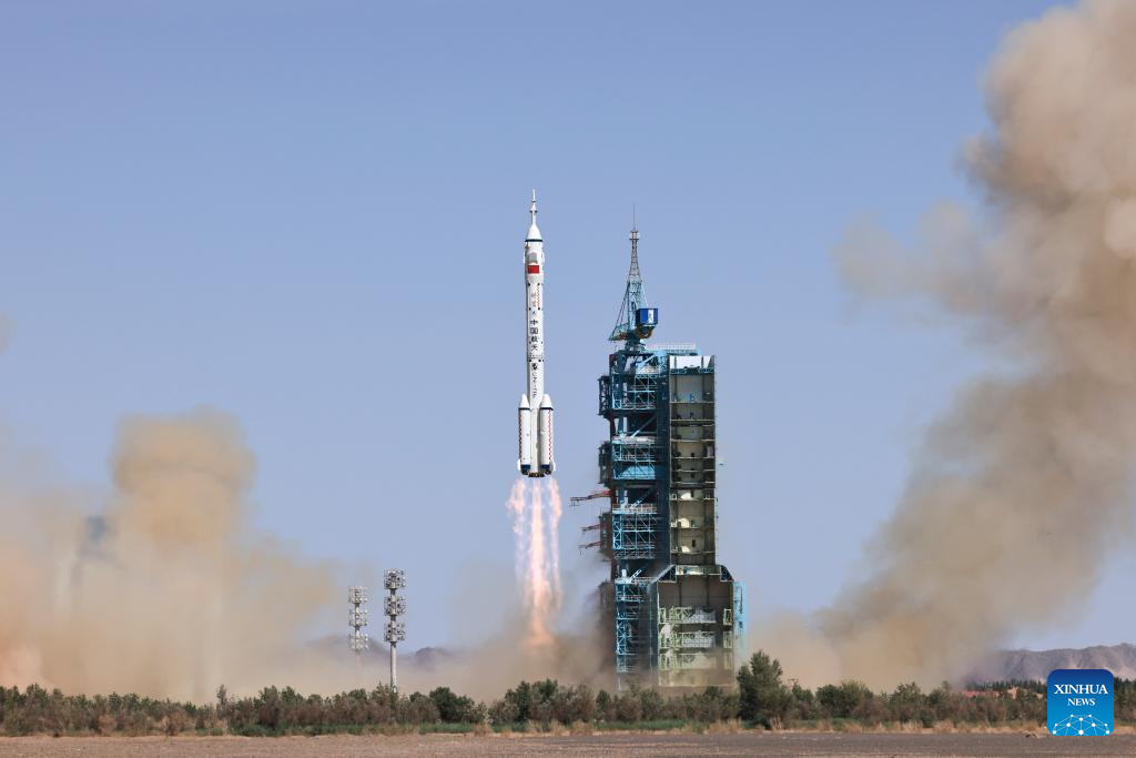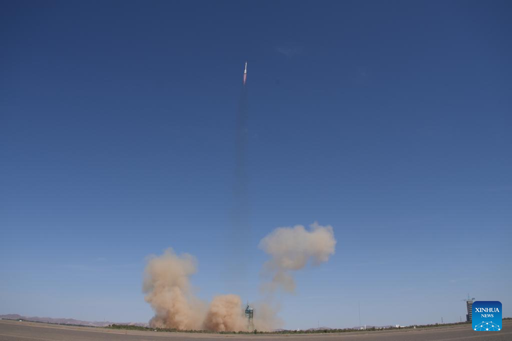 JIUQUAN, June 5 (Xinhua) -- China on Sunday launched the crewed spaceship Shenzhou-14, sending three astronauts to its space station combination for a six-month mission.