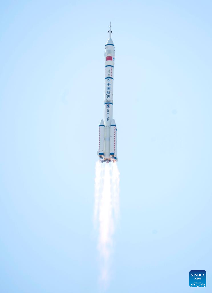 The spaceship, atop a Long March-2F carrier rocket, was lifted off from the Jiuquan Satellite Launch Center in northwest China at 10:44 a.m., according to the China Manned Space Agency (CMSA).