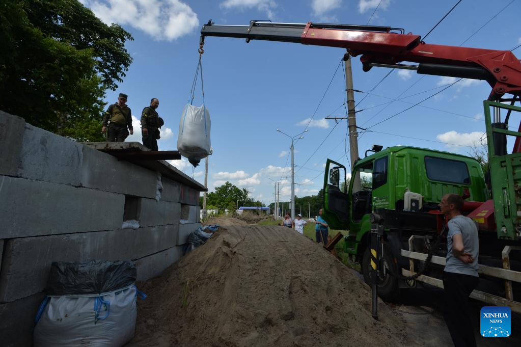Citizens build fortifications in Kharkov, Ukraine, June 1, 2022. (Photo by Peter Druk/Xinhua)
