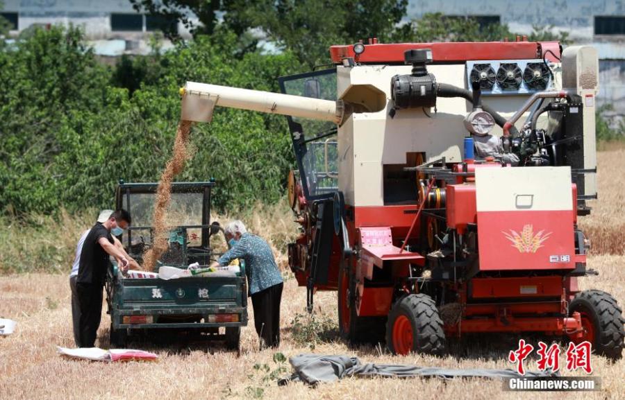 Farmers harvest wheat in a wheat field in Beijie village, Xingtai, north China's Hebei Province, June 5, 2022. (Photo: China News Service/Song Jie)