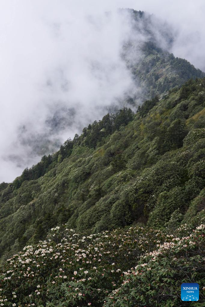 Blossoms of alpine azalea are seen at Giant Panda National Park in Longmen Mountains in southwest China's Sichuan Province, June 5, 2022. (Xinhua/Jiang Hongjing)