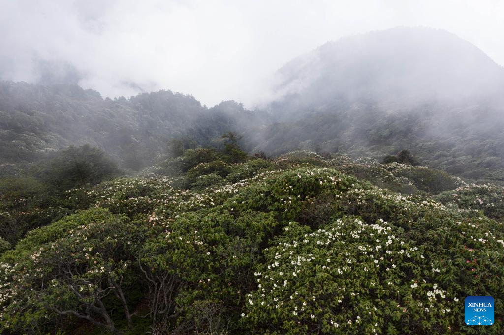Blossoms of alpine azalea seen at Giant Panda National Park in SW China's Sichuan