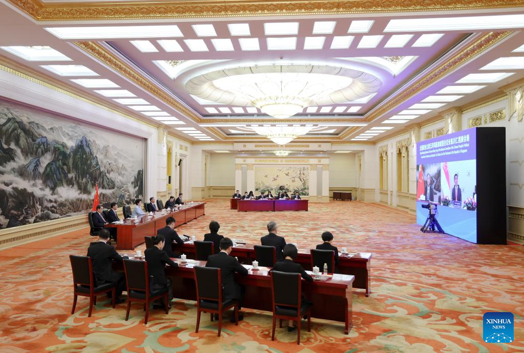 China's top political advisor holds virtual meeting with Singaporean parliament speaker (2)