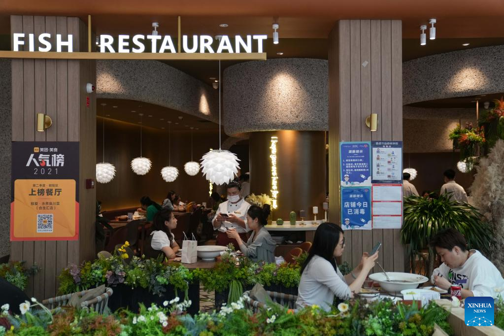 Customers have meals in a restaurant in a shopping mall in Chaoyang District of Beijing, capital of China, June 6, 2022.