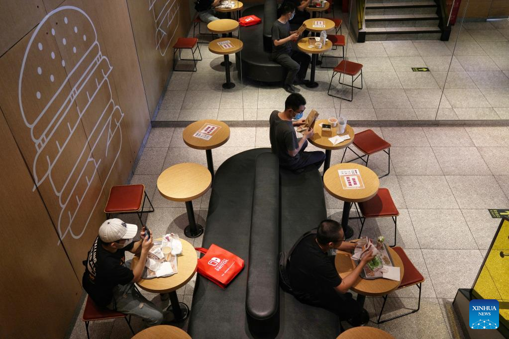 People have lunch at a restaurant in Beijing, capital of China, June 6, 2022. No new local COVID-19 infections were reported in Beijing in the 15 hours ending at 3 p.m. Monday, and no infections were registered at community level from Saturday to Monday afternoon, Pang Xinghuo, deputy head of the Beijing municipal disease prevention and control center, said at a press conference on Monday.