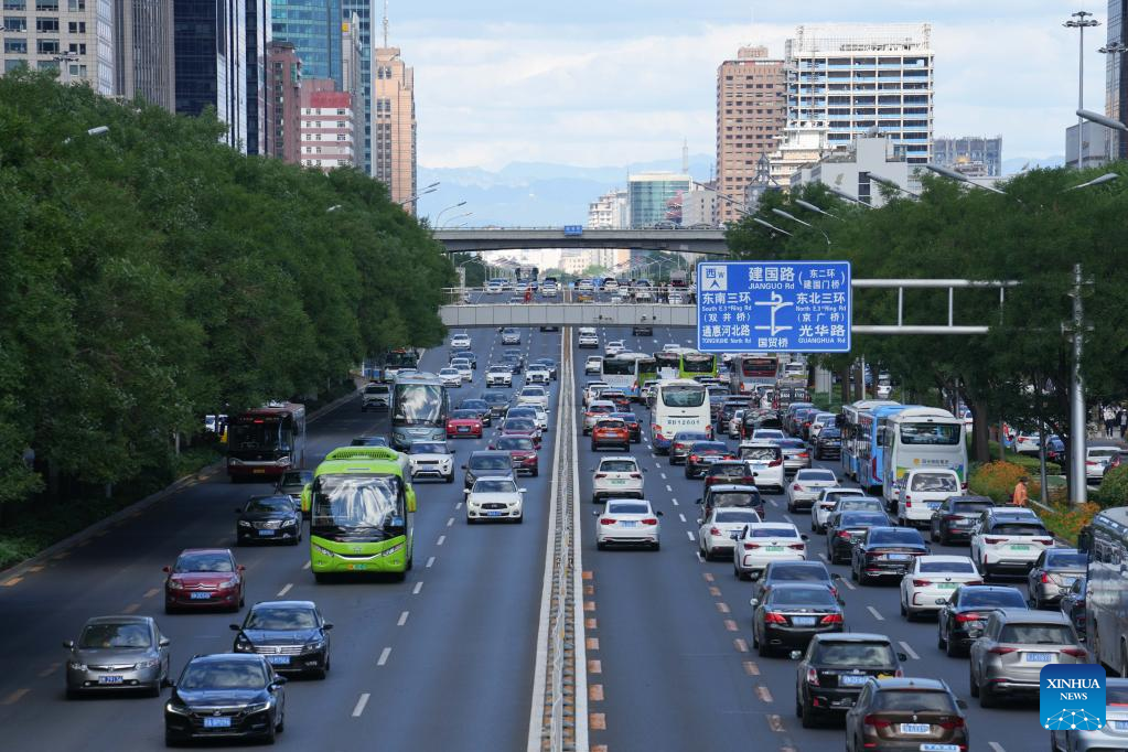 Vehicles run at the Central Business District (CBD) in Chaoyang District in Beijing, capital of China, June 6, 2022. No new local COVID-19 infections were reported in Beijing in the 15 hours ending at 3 p.m. Monday, and no infections were registered at community level from Saturday to Monday afternoon, Pang Xinghuo, deputy head of the Beijing municipal disease prevention and control center, said at a press conference on Monday.