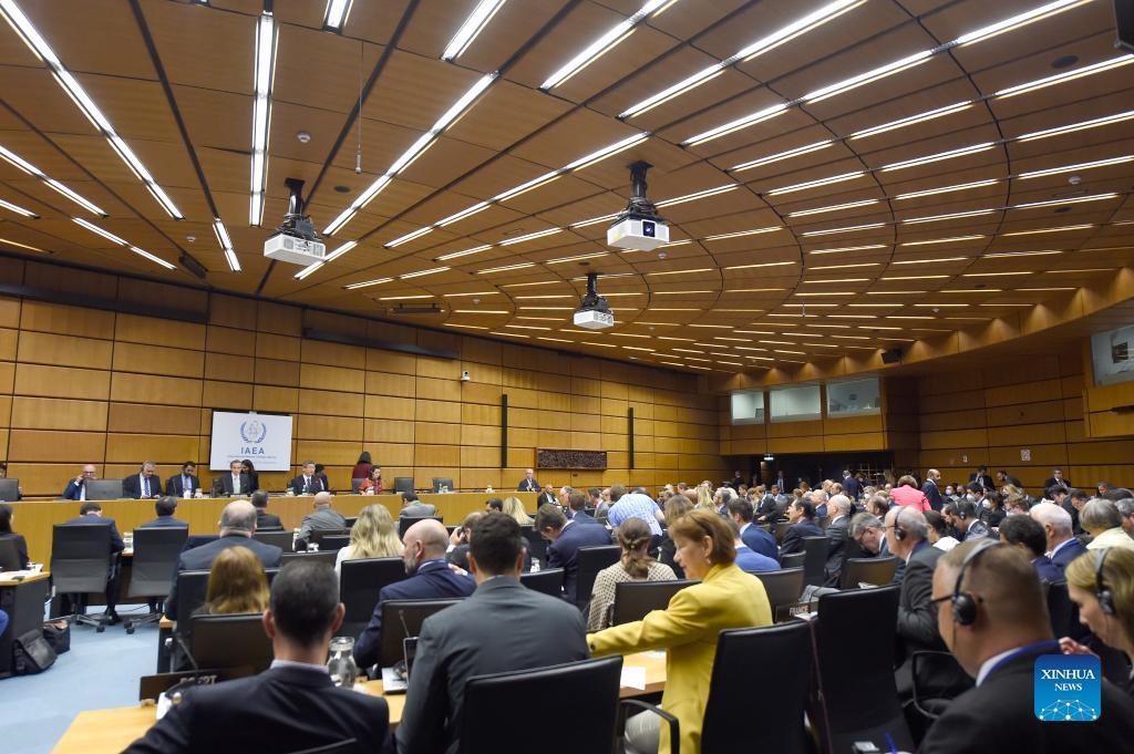 Photo taken on June 6, 2022 shows the scene of a meeting of the International Atomic Energy Agency (IAEA) Board of Governors held in Vienna, Austria. (Xinhua/Guo Chen)
