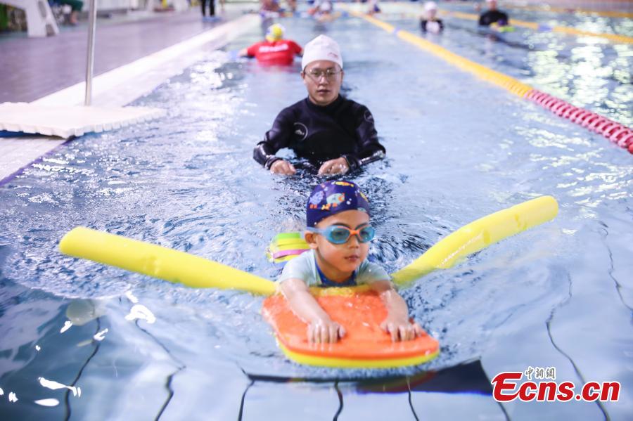 A kid takes part in a swimming training at a gym in Daxing district, Beijing, June 6, 2022. (Photo: China News Service/Zhao Jun)