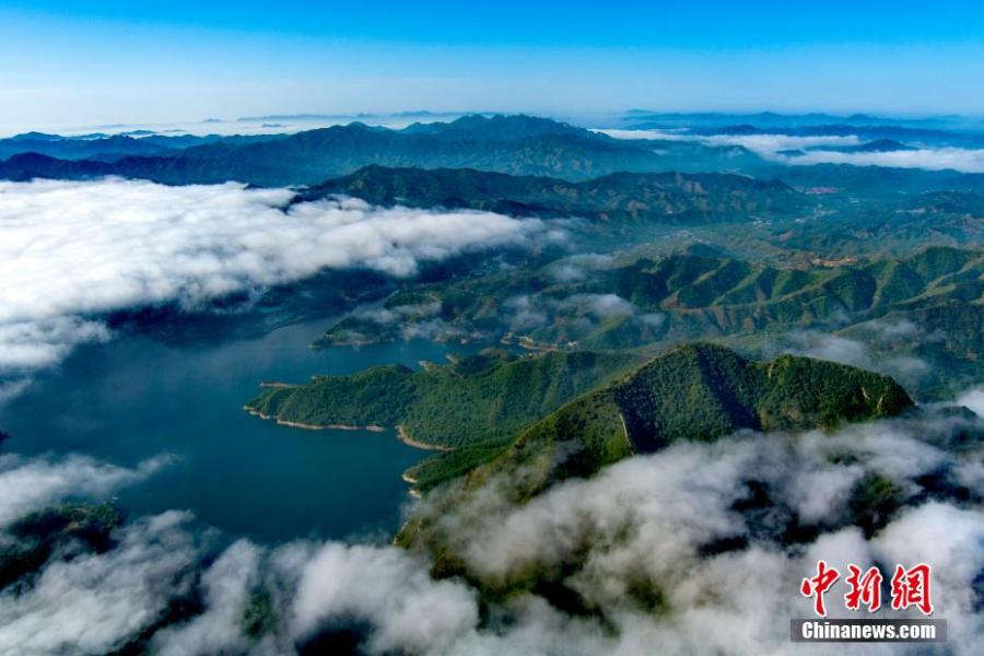 Magnificent scenery of the underwater Great Wall enveloped in clouds in the Panjiakou reservoir, Kuancheng Manchu Autonomous County, north China's Hebei Province, June 5, 2022. (Photo: China News Service/Hu Jiulong Zhu Jianjun)