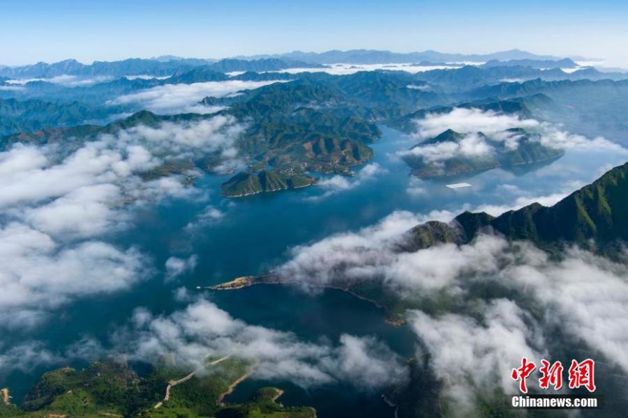 Magnificent scenery of the underwater Great Wall enveloped in clouds in the Panjiakou reservoir, Kuancheng Manchu Autonomous County, north China's Hebei Province, June 5, 2022. (Photo: China News Service/Hu Jiulong Zhu Jianjun)