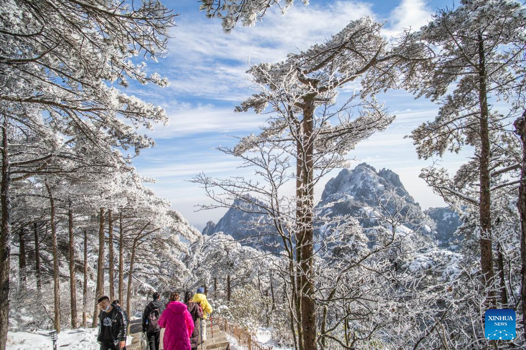 People view the snowy scenery of Mount Huangshan, Nov. 22, 2021.
