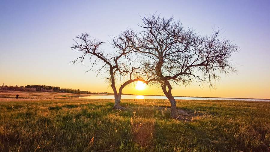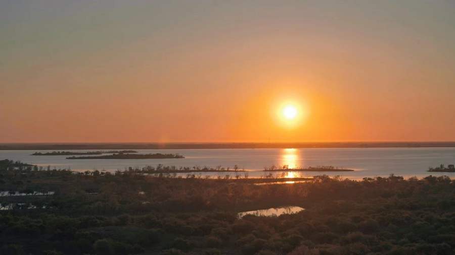 Photo shows sunset at the Xianghai National Nature Reserve, which is located in the northwestern part of Tongyu county, northeast China’s Jilin Province. (Photo/Ge Chichuan)