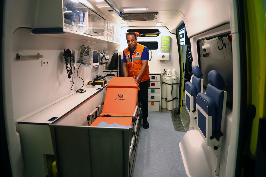 Photo shows the interior of an ambulance during the Africa Health ExCon in Cairo, Egypt, on June 6, 2022. (Xinhua/Ahmed Gomaa)