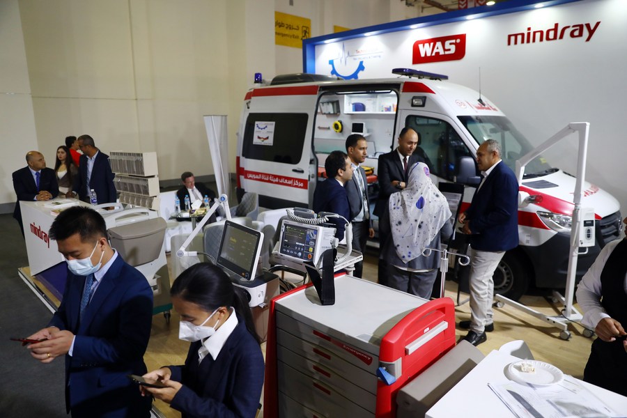 People visit the booth of Chinese firm Mindray during the Africa Health ExCon in Cairo, Egypt, on June 6, 2022.(Xinhua/Ahmed Gomaa)