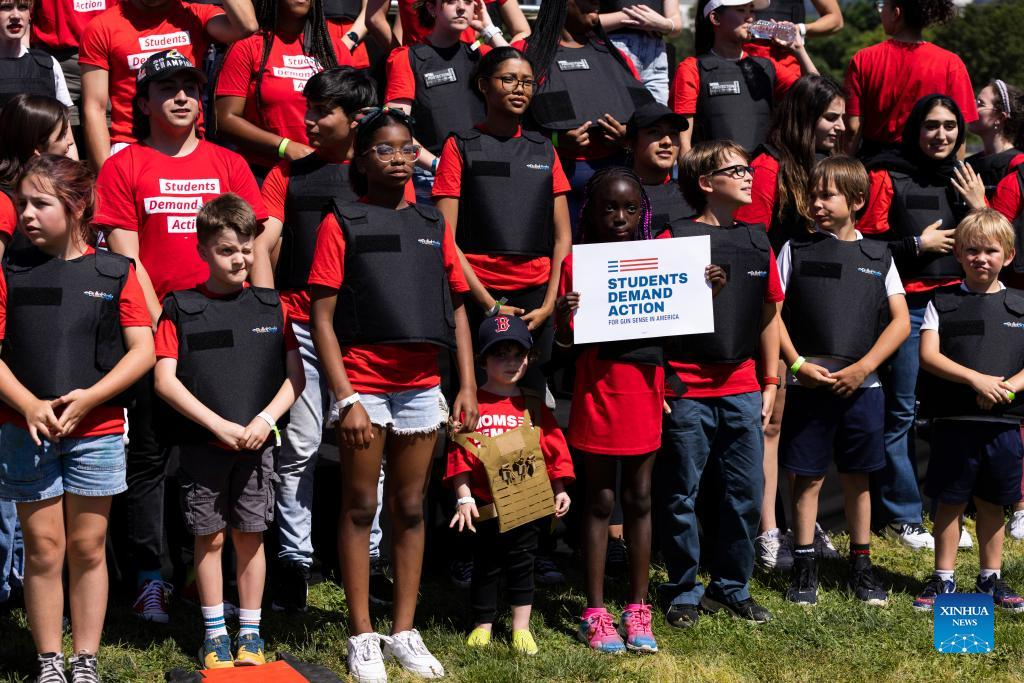 WASHINGTON, June 6 (Xinhua) -- A group of student activists gathered in Washington, D.C. on Monday afternoon, calling for actions from U.S. politicians in the wake of mass shootings over the past few weeks.