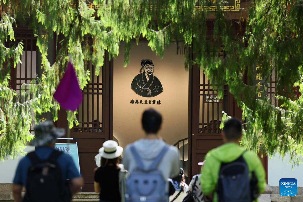 Tourists visit a park dedicated to Zhu Xi, a renowned Chinese philosopher in the 12th century, in Mount Wuyi in southeast China's Fujian Province, June 6, 2022.