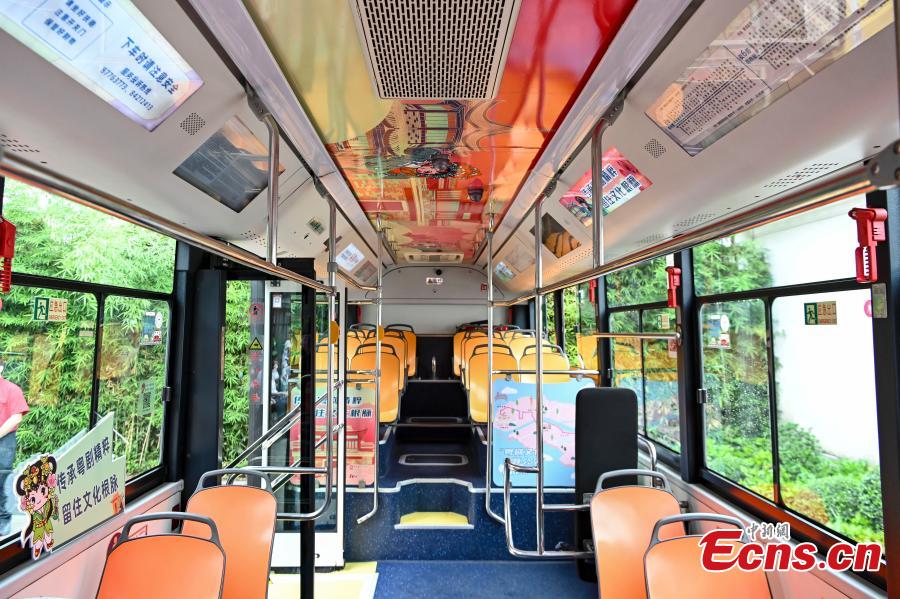 Photo shows the interior view of the Cantonese opera themed bus in Guangzhou, south China's Guangdong Province, June 8, 2022. (Photo: China News Service/Chen Jimin)