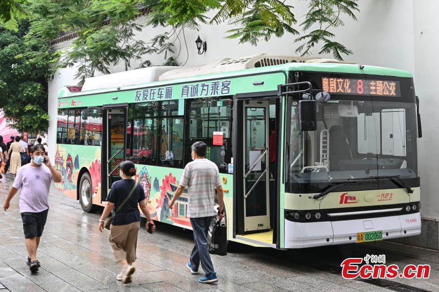 Photo shows a Cantonese opera themed bus in Guangzhou, south China's Guangdong Province, June 8, 2022. (Photo: China News Service/Chen Jimin)
